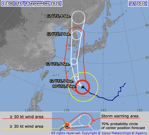 La saison 2020 dans le bassin Pacifique s'annonce très intense. Haishen succède en effet à Bavi et Maysak et représente une nouvelle menace dans le Pacifique nord-ouest.