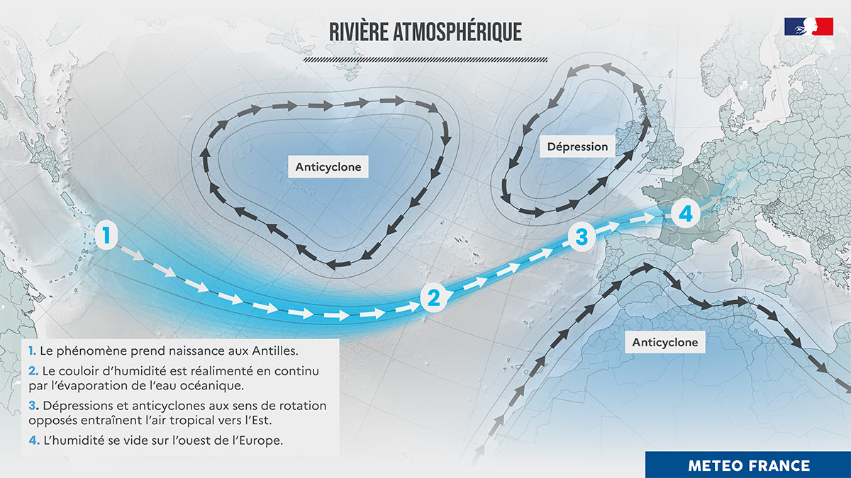 Le "rail des dépressions" est décalé plus au sud qu’à l’accoutumée. L'anticyclone, positionné trop au sud, ne protège plus l’Europe de l’Ouest des perturbations, très actives sur la France.