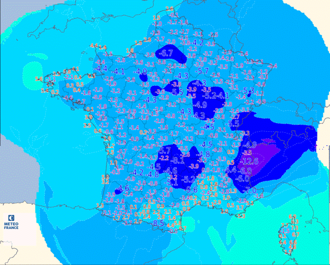 À signaler que la nuit prochaine s’annonce de nouveau bien froide avec des valeurs proches de celles enregistrées cette nuit, avant une nette remontée du mercure pour les journées de vendredi et samedi mais le temps deviendra alors plus perturbé.