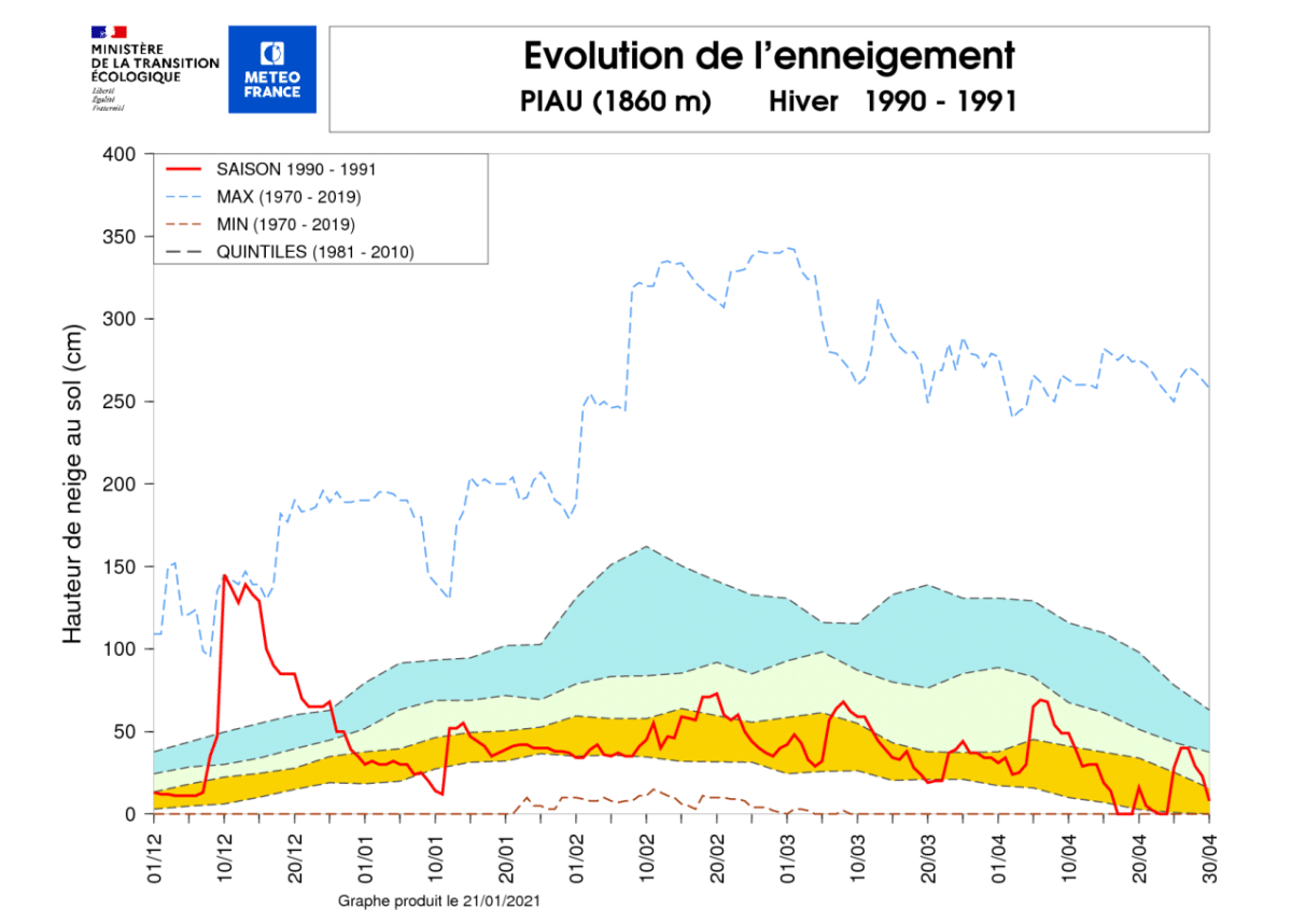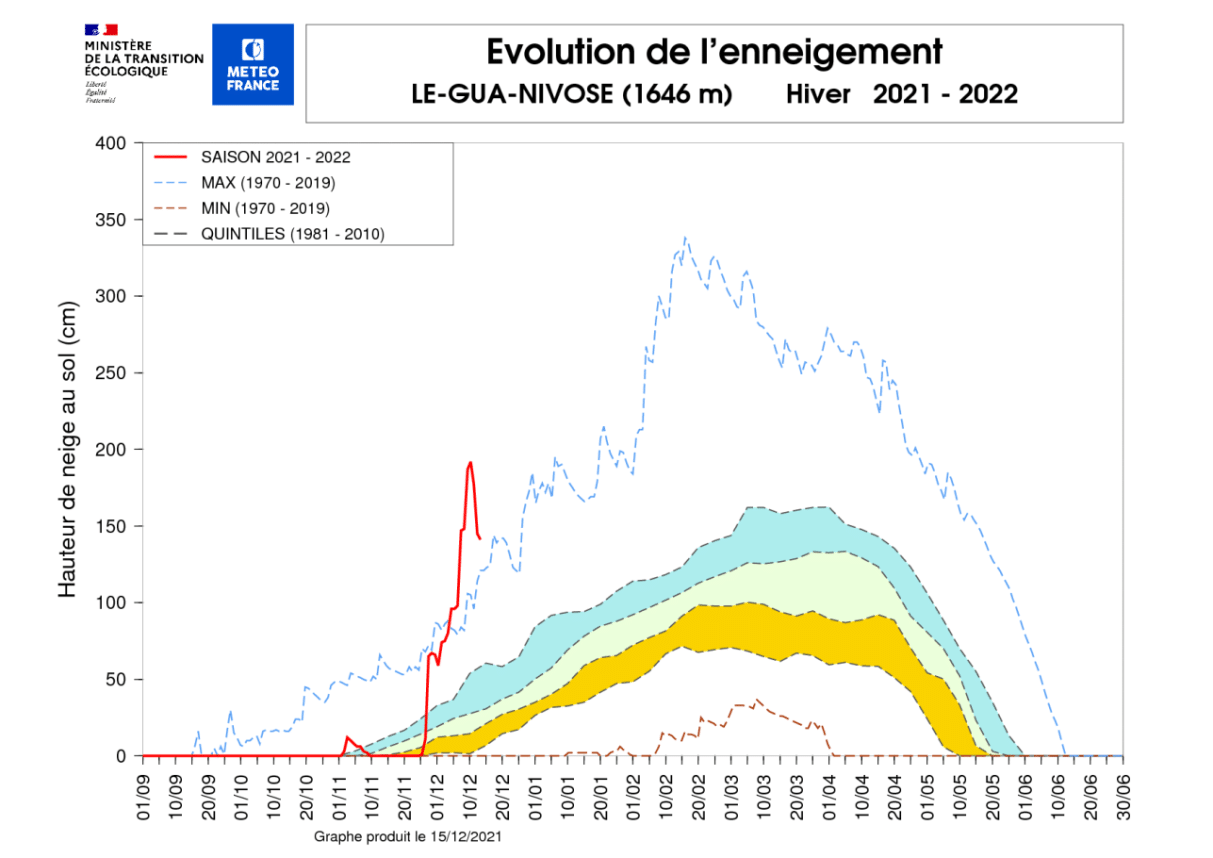Dans cette même période de début décembre, les précédents records depuis 40 ans (hiver 1981-1982) étaient de 1,43 m le 12 décembre 2008 et de 1,40 m le 14 décembre 1990.