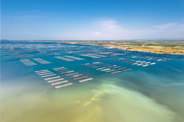 La légende du photographe : Sous son esthétique presque irréelle, cette photographie aérienne révèle une profonde cicatrice écologique. Ce phénomène laiteux qui s’étend dans l’étang de Thau est la "malaïgue". C’est une crise d’anoxie, une privation d’oxygène due aux températures qui ont fait suffoquer la lagune lors de la canicule de fin juin et début juillet 2025. Privés d’oxygène, tous les organismes marins meurent, y compris les poissons, huîtres et coquillages élevés dans l’étang de Thau.