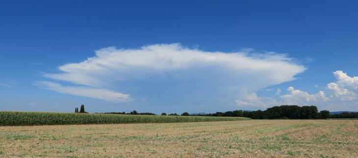 - Du 13 au 15 août : épisodes orageux sur l’Occitanie et la moitié est du pays avec de nombreuses chutes de grêle et des pluies souvent intenses comme à Toulouse le 14 et à Marseille le 15 avec jusqu’à 50 mm en une heure.