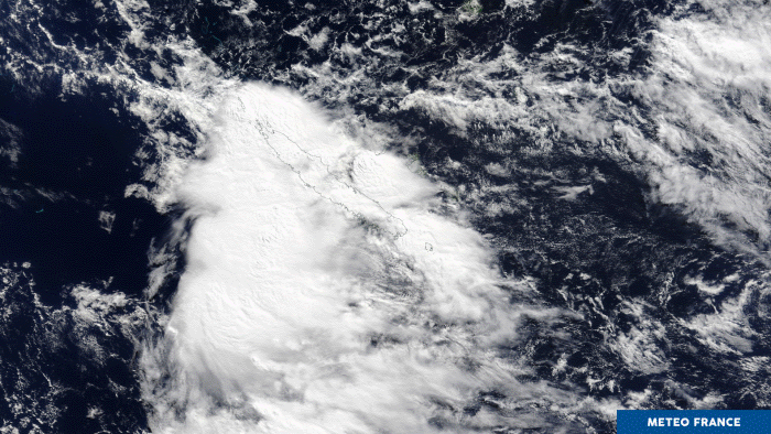 À minuit (15 heures à Paris), l'axe pluvio-orageux s'éloigne vers le sud-est, et les pluies orageuses n'intéressent plus que l'île des Pins et Maré (île la plus méridionale des Loyauté). Les cours d'eau restent encore hauts et la prudence reste encore de mise sur l'ensemble du territoire cette nuit.