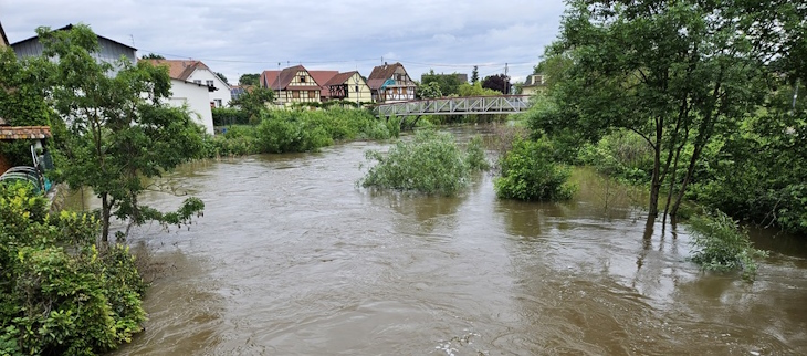22/05/2024En fin de semaine dernière, de jeudi à vendredi soir, un épisode pluvieux important a touché le nord de l'Alsace et l'est de la Moselle. Il est tombé plus d'un mois de précipitations en 24 heures faisant réagir de manière très significative les cours d'eau du Grand Est qui ont débordé et provoqué des inondations. Dans de nombreuses communes, les dégâts sont conséquents ; les niveaux atteints par les crues historiques ont parfois été dépassés. De nouvelles pluies sont tombées sur les mêmes secteurs en ce début de semaine pouvant entraîner de nouvelles inondations importantes du fait de sols déjà saturés et des forts débits des cours d’eau.