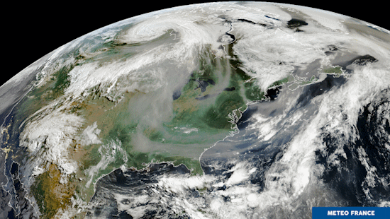 Ce début de semaine, la France a d'autre part été touchée par un large panache de fumées provoquées par les incendies en cours au Canada. Cet important panache transporté par de puissants courants atmosphériques traverse l’Atlantique pour arriver jusqu’en Europe.