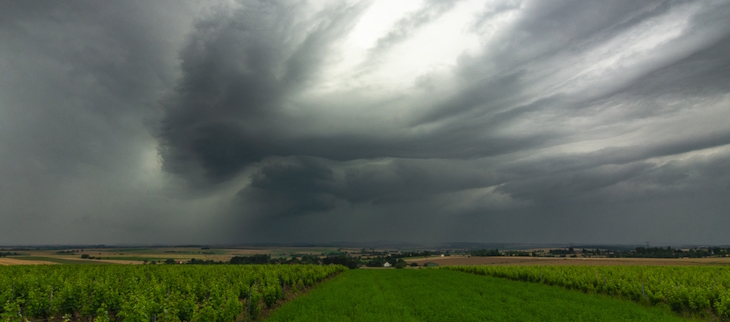 Une troisième vague orageuse naît l’après-midi de la Saône-Et-Loire à l’Yonne, puis se propage à un large quart Nord-Est.