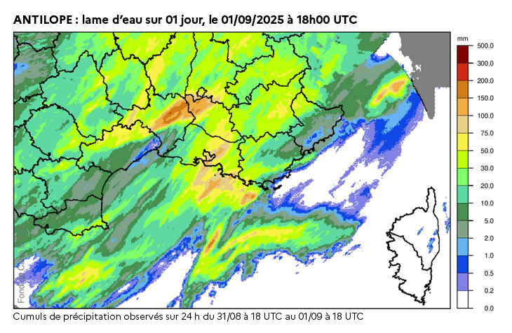 À noter également : des intensités horaires remarquables ont été mesurées dans le Gard et le Vaucluse avec 80 à 100 mm en une heure.