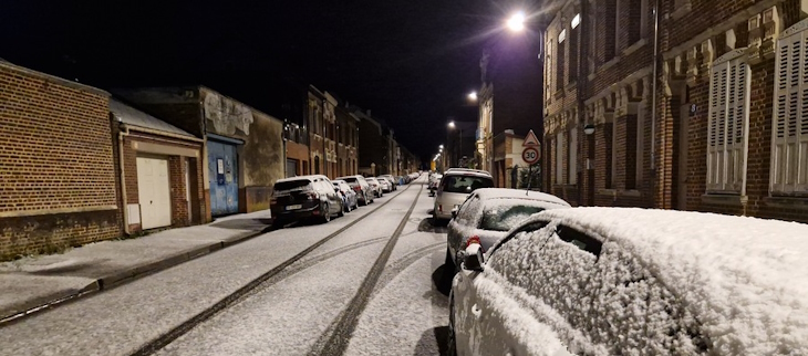 Vers le nord-ouest des Hauts-de-France, au-delà d'une ligne Abbeville/Arras/Valenciennes, les précipitations neigeuses faiblissent temporairement en fin de journée avant de reprendre en seconde partie de nuit et matinée de jeudi. Sur l'ensemble de l'épisode, elles conduisent alors à des hauteurs de neige de l'ordre de 5 à 10 cm, atteignant jusqu'à 10 à 15 cm localement 20 cm sur le relief du Boulonnais voire de l’Artois.