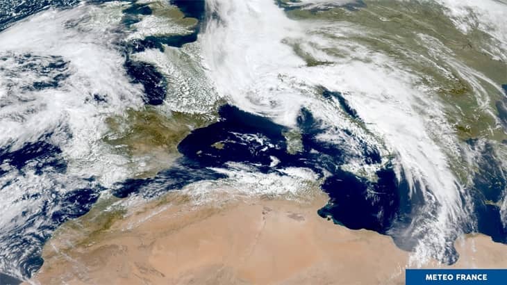 Image satellite Meteosat du 17 avril 2025 à 14 heures (tempête Hans)