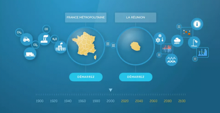19/03/2026Depuis de nombreuses années, les travaux de la communauté scientifique internationale indiquent qu'un réchauffement du climat à l'échelle globale est en cours et qu'il se poursuivra pendant plusieurs décennies au moins. Il peut toutefois sembler difficile de comprendre les enjeux de ces changements et d'en mesurer concrètement les impacts. Pour offrir à chacun, citoyen, journaliste, décideur, l'opportunité d'en prendre la mesure, Météo-France propose ClimatHD, un outil simple, accessible à tous, offrant une vision intégrée des évolutions du climat et de ses impacts depuis le début des mesures et jusqu'à l'horizon 2100, à l'échelle du pays et de ses régions. Récemment, il a été enrichi d'une rubrique dédiée à l'évolution du climat sur l'île de La Réunion.